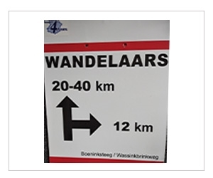 Let op: Bij kruisingen/zijwegen waar geen bord staat, loopt u rechtdoor.